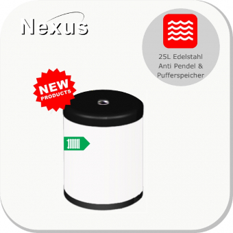 BT-25 Liter Edelstahl Pufferspeicher 2 Anschlüsse oben/unten Stand- und Wandmodell Produktspezifikation: Die NEXUS-Warmwasserspeicher erfüllen die höchsten Anforderungen der PED, der Druckgeräterichtlinie 97/23 / EG / CE. Mit der fortschrittlichen Schweißtechnik haben die Boiler ein international hohes nachhaltiges Qualitätsniveau und ein sehr elegantes Erscheinungsbild.